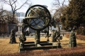 院落中陈列的元、明时代各种天文仪器的铜质复制品,包括元代著名天文学家郭守敬设计制造的正方案、简仪(原大三分之一),原大明代浑仪、明代圭表和石质赤道式日晷。北京古观象台以建筑(包括台体和附属建筑群)完整和仪器配套齐全,在国际上久负盛名,台上陈列着气势磅礴、精美雄浑、雕刻细腻的清代八架古天文仪器,台下是幽雅古朴、景致迷人的附属建筑群;观象台如此配套完整的巨型天文铜制古仪在世界上已是独一无二的了,它不仅是中西古典天文仪器的历史遗存,也是中国古代冶金铸造、机械工艺的重要遗存。清制8架铜仪除了造型,花饰,工艺等方面具有中国的传统外,在刻度,游表,结构等方面,还反映了西欧文艺复兴时代以后,大型天文仪器的进展和成就,也是东西文化交流的历史见证。 (CCN传媒图片网 罗晓娜)